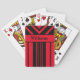 Add a personalised touch to a stylish red and black geometric pattern deck of cards by adding your name in the sidebar. Black chevrons point down to the customisable name banner in the top third of the design. Thick and thin vertical black stripes fill the bottom of the playing cards. Makes a great stocking stuffer or gift for guests.