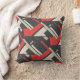Red Black Taupe Beige Tiled Diagonal Abstract Art Cushion