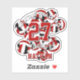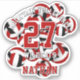 This team spirit volleyball sticker for girls or boys features the image of a bunch of varied size red, black and white volleyballs, upon which you can customise the athlete's name, jersey number, team name and mascot name - by katz_d_zynes