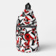 This volleyball themed sling bag features a random pattern of varied size red, black & white volleyballs turned every which way on a white background - customise with the volleyball player's monogram - by katz_d_zynes