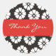 An attractive thank you sticker with white flowers on a black background and red panel.The thank you stickers can be used for all occasions to express your appreciation.