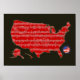 red/black u.s.a. music-notes map poster