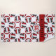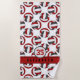This volleyball themed beach towel features a pattern of small red, black and white stylised volleyballs arranged in a mirrored pattern on a customisable white background - personalise with her name and jersey number - by katz_d_zynes