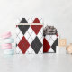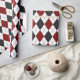 This geometric pattern gift wrapping paper features a red, black and white argyle plaid pattern with grey "stitching" extending diagonally across the diamond shapes - by katz_d_zynes