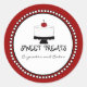 Red Black White Bakery Business Stickers with cute clipart cake. Elke Clarke©. Customisable with your information and background colour.