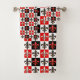 Red Black White Chequered Fleur-de-lis Design Bath Towel Set