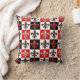 Red Black White Chequered Fleur-de-lis Design Cushion