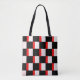 My original digital art on this tote bag features a colour-block pattern of squares and rectangle spaces processed and created for an artsy style. The front has Black and White squares with Red linear stripes alongside them and there is a slight faded bleed in the white areas for a distressed type of appearance. The back has the same pattern which gives a vintage retro vibe for a classic touch. These bags are great for carrying groceries, books, bible studies, toys, or use as a beach bag or gym bag; anything you need to carry around! This can also be used as a Gift Bag - stuff it with all kinds of goodies for anyone or as a swag bag at weddings! These bags are 16” x 16” with a 28” strap. All bags have a black laminated lining for sturdy support as well.