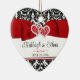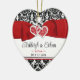Red, Black, White Damask Love Hearts Wedding Ceramic Tree Decoration
