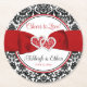Red, Black, White Damask Love Hearts Wedding Round Paper Coaster