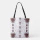 A lively kaleidoscope of red, white, black & grey is featured on this over the shoulder tote. Designed by Judy Sorrels - Artist.
