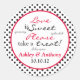 Chic cherry red, black and white polka dots personalised candy buffet stickers that are perfect for a wedding or bridal shower. You can personalise the names and the wedding date using personalise it. You can change any of the other text as well in the customise it section. Make sure to get the size you want with these as there are two sizes available. Chic and stylish.