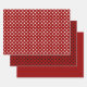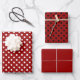 These wrapping paper sheet features one sheet that is red with white polka dots, one sheet that is red with black polka dots and one sheet that is all red.