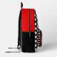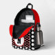 Black monogram against white red circle. Small red white circles against black. Larger white polka dots against black background. Solid red colour on top. Solid black colour on sides and bottom. Original Design © TamiraZDesigns.