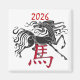 An artistic image of a stylised black horse is the background for the Chinese symbol for horse in red on this magnet. Above the image in red is "2026", the year of the horse in the Chinese zodiac.