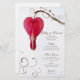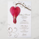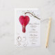 Customise the pretty Red Bleeding Hearts Wedding Menu with the details of the meal that you will serve at your romantic engagement party, bridal shower luncheon or marriage reception dinner by adding the salad or first course, entree or second course and dessert or third course. This elegant custom flowery wedding menu features a floral photograph of a red Bleeding Heart flower blossom, or dicentra, with brown swirls adorning the corners and a white background.
