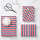 These vibrant wrapping paper sheets feature a captivating design with alternating red, blue, and white stripes, adding a pop of colour and a touch of patriotism to any gift. The bold pattern effortlessly combines classic hues, creating a versatile and eye-catching option for any occasion.