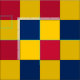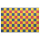 Fabric with seamless red, blue and yellow chequered pattern in colours of flag of Chad