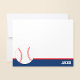 Modern baseball flat note cards. Classic navy blue and red colour combination make this a traditional choice. Makes a great thank you note for a Bar Mitzvah or birthday party.