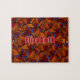 This fun basketball themed jigsaw puzzle features basketballs of varying sizes turned every which way in a 3D look pattern - two panels on each basketball have been recolored--one blue and one red - background image is a group of basketballs that you can see between the patterned basketballs - customise with the athlete's name - by katz_d_zynes