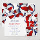 red blue basketballs girls boys birthday party invitation
