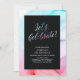 This beautiful birthday party invitation features stylish typography "Let's celebrate!" with a red, purple & blue fluid texture background.