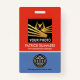 A red and blue column box design accentuated by a simple white demarcation line. The red column at the top houses your prestigious name and job title. Above this, is a photo template option with photo dimensions of 1,000 x 1,000 pix. In the blue layer below lies a global logo you can use with its organisation name underneath.