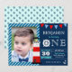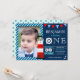 Amaze your guests with this cool nautical birthday party invite featuring a beautiful lighthouse and cute nautical elements with modern typography against a navy blue background. Simply add your event details on this easy-to-use template and adorn this card with your child's favourite photo to make it a one-of-a-kind invitation. Flip the card over to reveal an elegant blue anchor pattern on the back of the card.