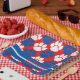 Red & Blue Repeating Pawprint Personalised Graduation Party Paper Plates
