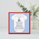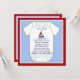 Adorable blue sailboat baby boy shower invitation features a red, white & blue background. This cute red sailboat baby shower invitation is easily customised for your event by simply choosing the "Customise it!" button to begin adding your event details, font style, font size & colour, and wording. Please note - all of the invitation designs you will find on Zazzle are printed graphics with no actual jewels, bows, raised, embossed, or added parts or pieces.
