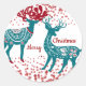 Red Blue Scandinavian Nordic Christmas Reindeer Classic Round Sticker