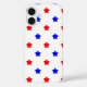 Do you like star theme phone cases? This phone case has a pattern of red and blue stars on a white background.