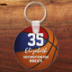 This custom basketball themed keychain for girls or boys features the realistic image of a basketball that has two recolored panels--one red and one blue - easily customise with player name & jersey number, plus school name and mascot name - by katz_d_zynes