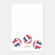This volleyball themed Post-it® Notes notepad features 3 red, blue and white volleyballs randomly arranged at the pad's lower edge surrounding the athlete's or coach's name - by katz_d_zynes