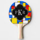 Red Blue Yellow Mondrian Blk Quatrefoil 3 Monogram Ping Pong Paddle