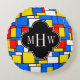 Red Blue Yellow Mondrian Blk Quatrefoil 3 Monogram Round Cushion