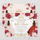 Red Blush Pink Floral Twins Gold Quinceañera Invitation