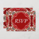 Say goodbye to boring RSVP cards! This unique special event RSVP card feature stunning Decorative digital lace Batik Bohemian fusion design in captivating red and white hues. Perfect for weddings and events seeking to break free from traditional colour schemes, these invites add a touch of bohemian elegance to any celebration.