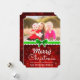 Red Bokeh Green Ribbon Christmas Custom Photo Card