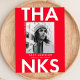 Trendy, modern graduation thank you postcard featuring the graduate's photo with "Thanks" in bold white lettering and red background. Personalize the front of the photo graduation thank you postcard by adding the graduate's name, school name, and graduation year. The back of the graduation photo thank you card features your return address with space for your typed or handwritten message.