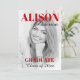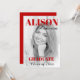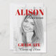 Red bold typography Class of 2025 graduation party photo invitation. This invitation for the Class of 2025 graduation party showcases a vibrant red typography that stands out. The front of the invitation has a contemporary design with a personalised photo of the graduate and their name. On the back, you'll find all the important details about the party, along with a graduation cap illustration and a stylish black border that adds a touch of elegance to the overall look.
