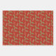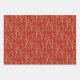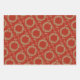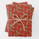 Each of these gift wrap sheets features a different botanical design with leaves, holly, branches, wreaths and red berries against a rich red background.
