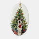 On the front of this Holiday ornament is the image of a beautiful Alaskan Malamute dog wearing a festive red bow. The dog sits in front of a decorated Holiday tree. On the back, red and green text says MERRY CHRISTMAS", and there are additional text fields for you to customise. Make it say whatever you'd like!