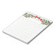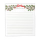 Easily make your Christmas lists with this lined notepad that features an illustrated garland of holly leaves and red berries tied with a cherry red ribbon curled into a looping bow along the top. Red ribbon and green foliage gives classic Christmas vibes with a hint of 90s nostalgia while arched, editable text in a sweet script feels feminine and timeless. The blank space below leaves room for writing in who or what the list is for to help keep your gift buying organized.