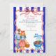 Step back in time with our adorable Retro Coquette BBQ invitation, perfectly crafted for America's 250th birthday! This design features a charming young couple at a BBQ, wrapped in a playful red wavy bow frame against a classic blue and white stripe background. It’s the ultimate blend of nostalgic charm and patriotic celebration.