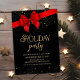 Red Bow Black and Gold Glitter Holiday Winter Party Invitation