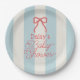 Red Bow & Blue Stripes Baby Shower Paper Plate