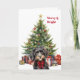 On the front of this Christmas card, an adorable black and tan Cavapoo dog wears a bright red bow collar while he sits in front of a Holiday tree. The red text says "MERRY & BRIGHT". All the text, inside and out, may be easily customized to anything you'd like. Be sure to see the other dog themed cards and gifts in our store.