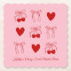 These Red Bow Cherry Sweet Bridal Shower paper coasters feature a coquette bow design with cherries and hearts plus space for personalisation