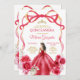 Elegant Red Floral Princess Dresses Quinceañera Girl Birthday Invite
